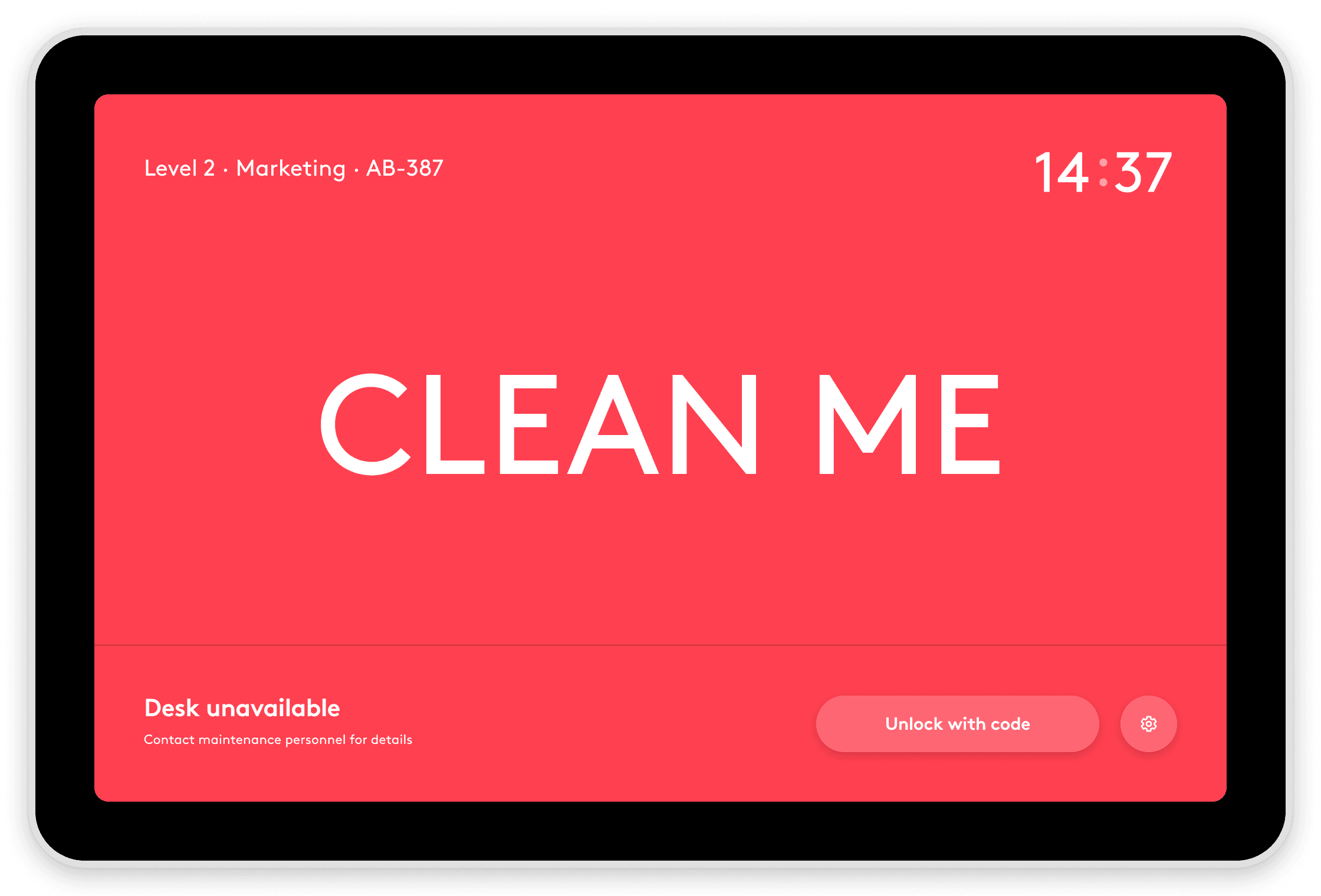Employees never have to guess which desk is free, occupied, or in between—all necessary information is available at a glance. We conducted extensive testing and tweaking for this “main” screen: maximised font size for better legibility from a distance, added extra options for checking in via a QR code, and many more.